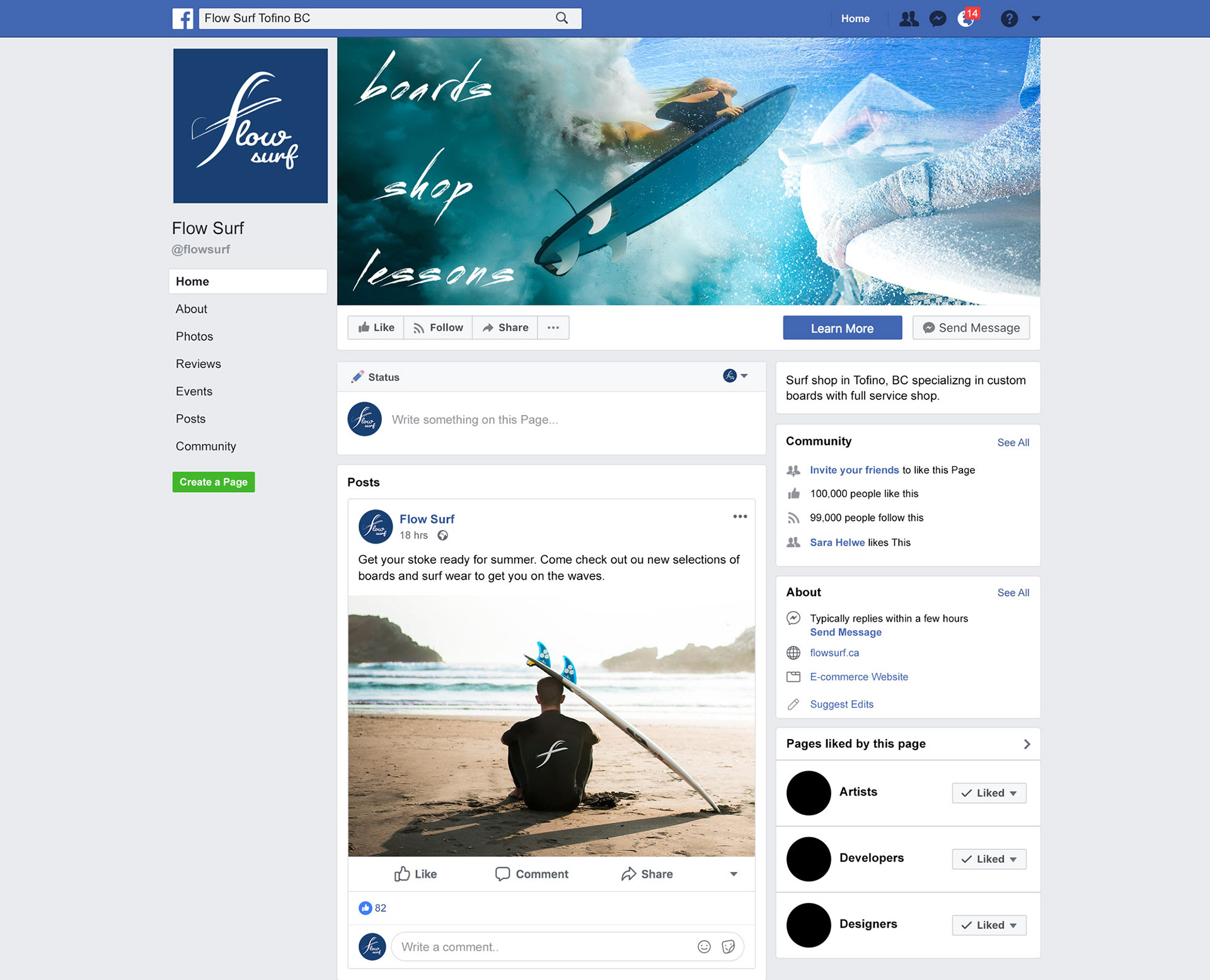The criteria for this project were to create new logo for a surf shop and design social media advertising and a social media layout.